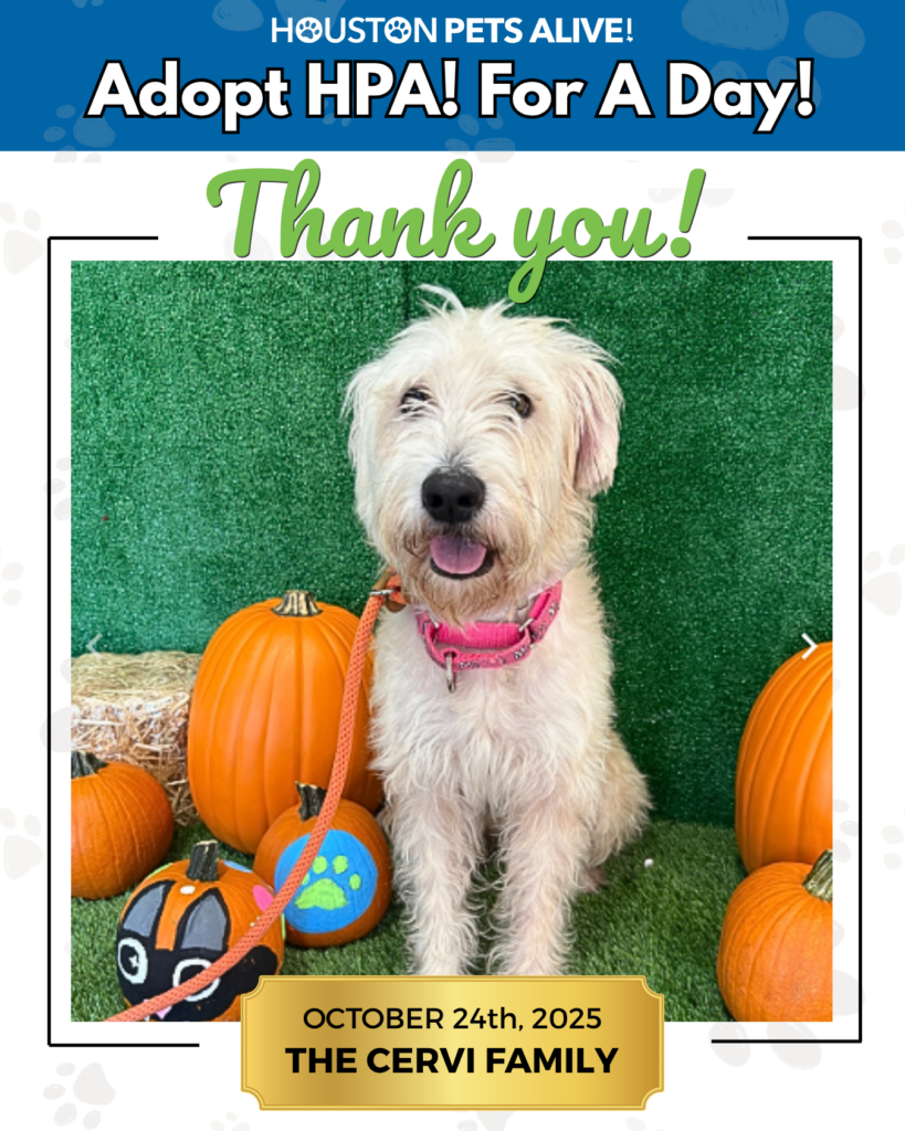 Today’s lifesaving care for every cat and dog at Houston Pets Alive! is generously sponsored by The Cervi Family. Their support ensures that every animal in our program receives the food, medical treatment, and comfort they need while waiting for their forever homes. Thank you for helping Houston’s most at-risk pets feel safe and loved today! :green_heart: